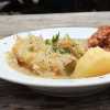 MeatMain Dish Beef Chuck, Onion, Salt, Clove, Bay Leaf, Wine Vinegar, Water, Shortening, Cabbage, Sugar, Caraway Seed, Dumpling Measuring Cups, Measuring Spoons, Knife, Skillet, Stove, Saucepan