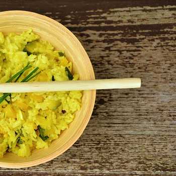 Ingredients: rice, chicken broth, wine, butter, heavy cream, garlic, lemon, dill, curry powder, salt, pepper