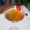 Ingredients: ice, vermouth, brandy, sugar syrup, bitter, lemon peel, cocktail cherry